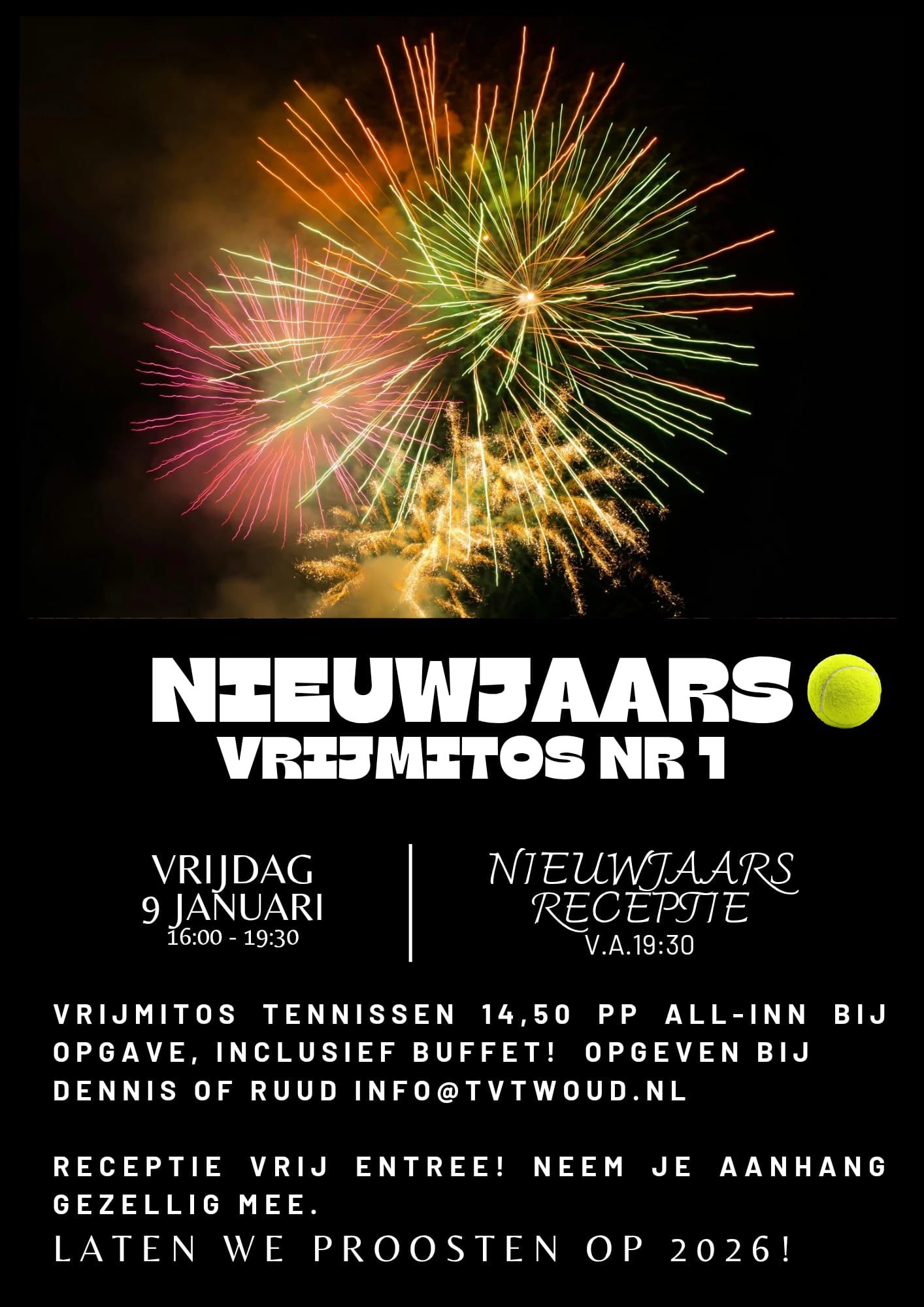 Het bestuur wenst alle leden van TV 't Woud een Gelukkig, Gezond en bovenal Sportief Tennisjaar 2026!