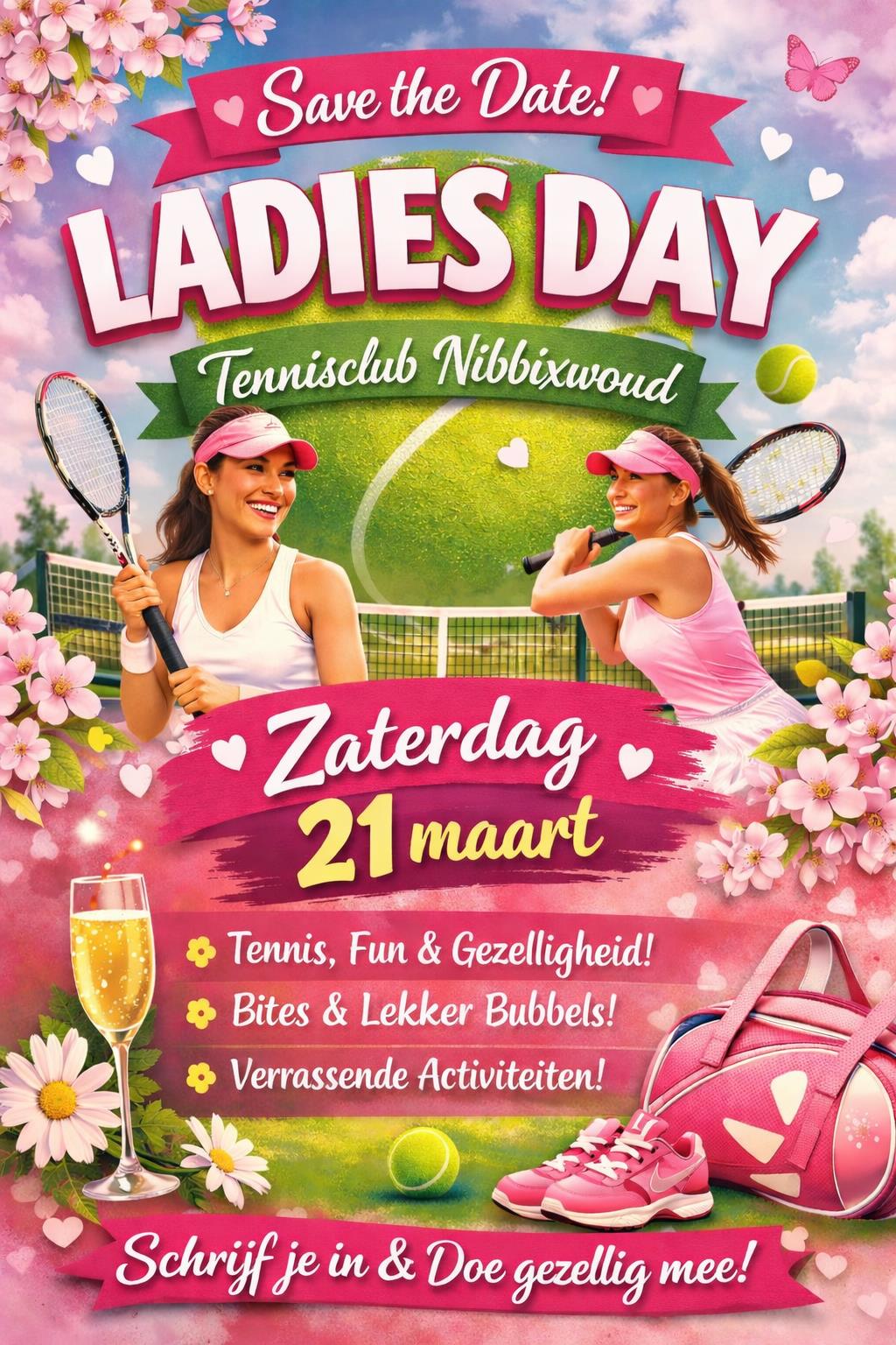 Voor alle dames en de vriendinnen en de vriendinnen van de dames van TV 't Woud jong en oud; save the date zaterdag 21 maart Ladies Day. Geef je vast op bij een van de organisatoren hieronder en meer info volgt snel!